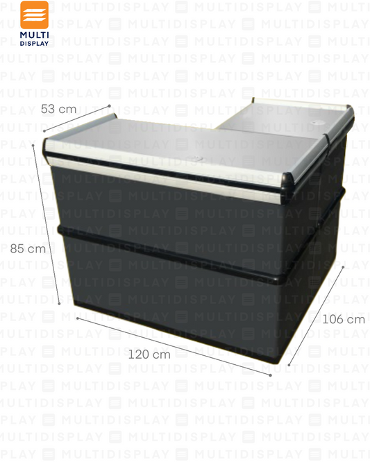 Mueble Caja Metal, con Mesa Auxiliar 200x53x85cm y 53x53x85cm, Derecha, Gris