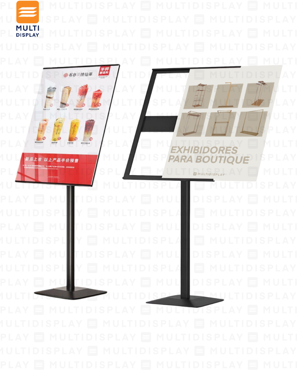 Portabanner de piso para destacar promociones, reforzar tu marca o mejorar la experiencia del cliente. Modelo robusto para letreros grandes de 50x70cm.