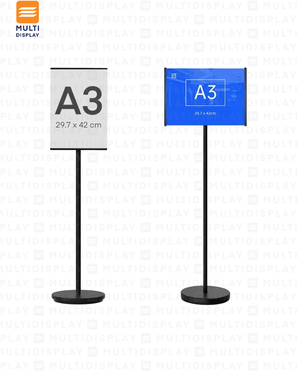 Portabanner Piso Elevado A3 21x29cm Plastico base Redondo, Negro